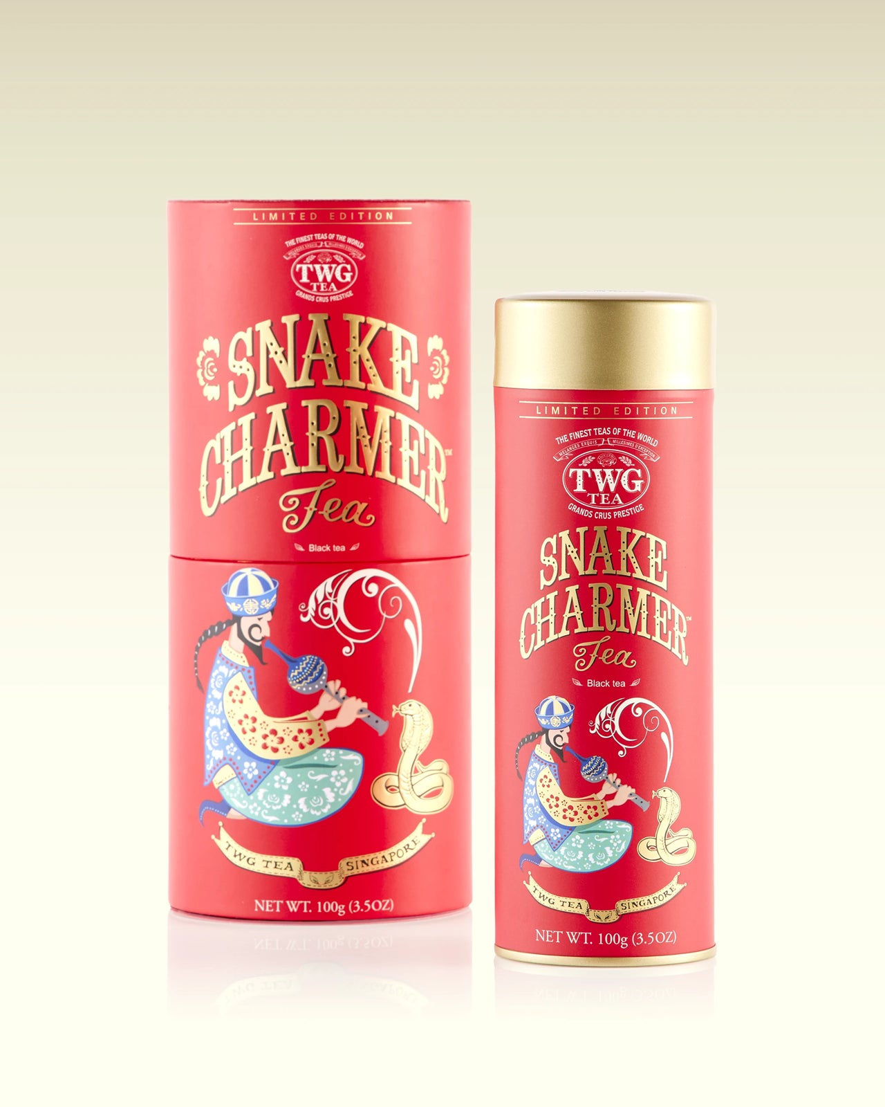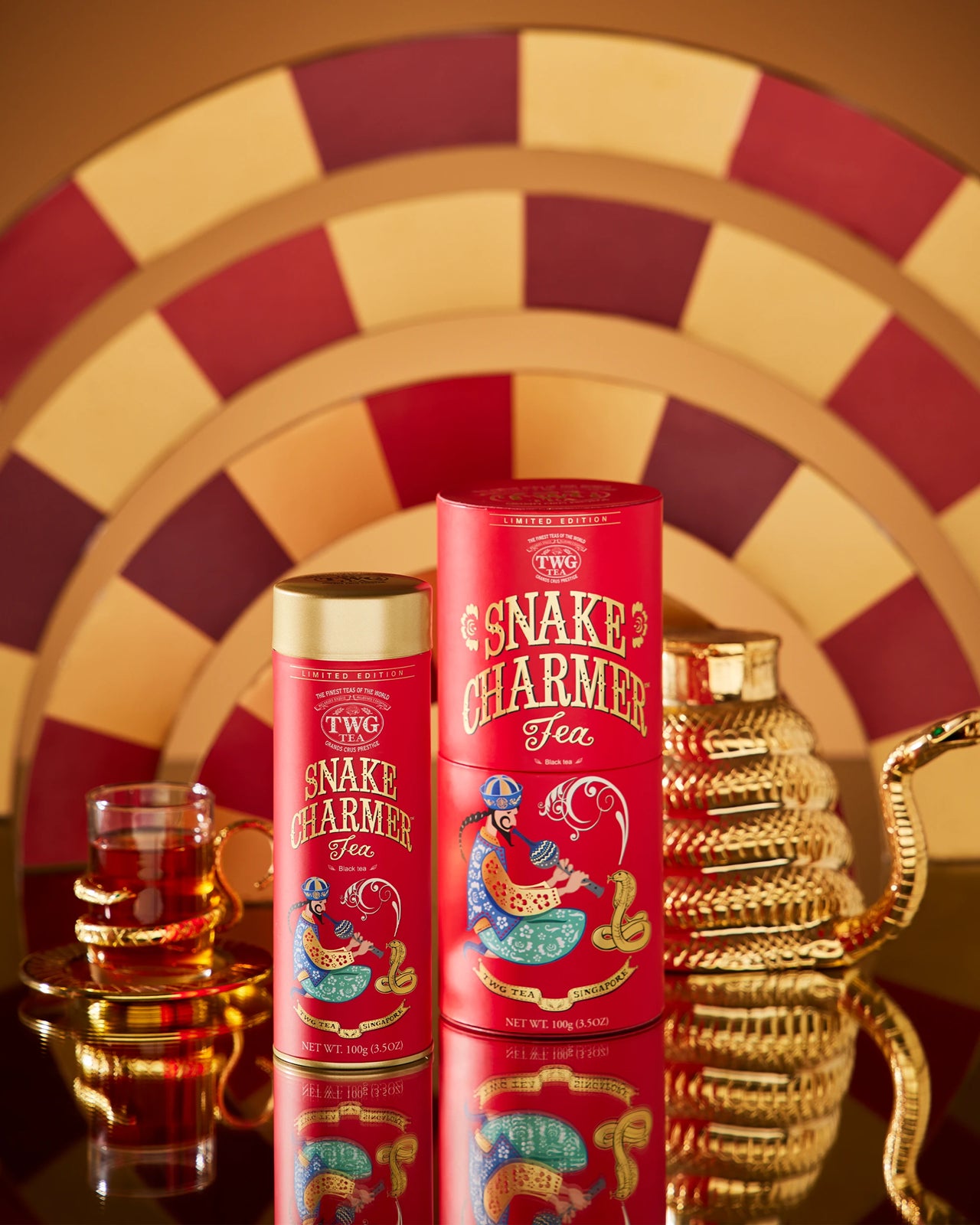 Ring in the New Year with TWG Tea's Snake Charmer Tea, an exquisite addition to the Grand Mode Tea Collection. A celebration of metamorphosis and renewal, this limited-edition blend weaves the rich depths of black tea with matured tea, offering a golden infusion accented by warm spices, citrus zest, exotic pineapple, and marigold blossoms.