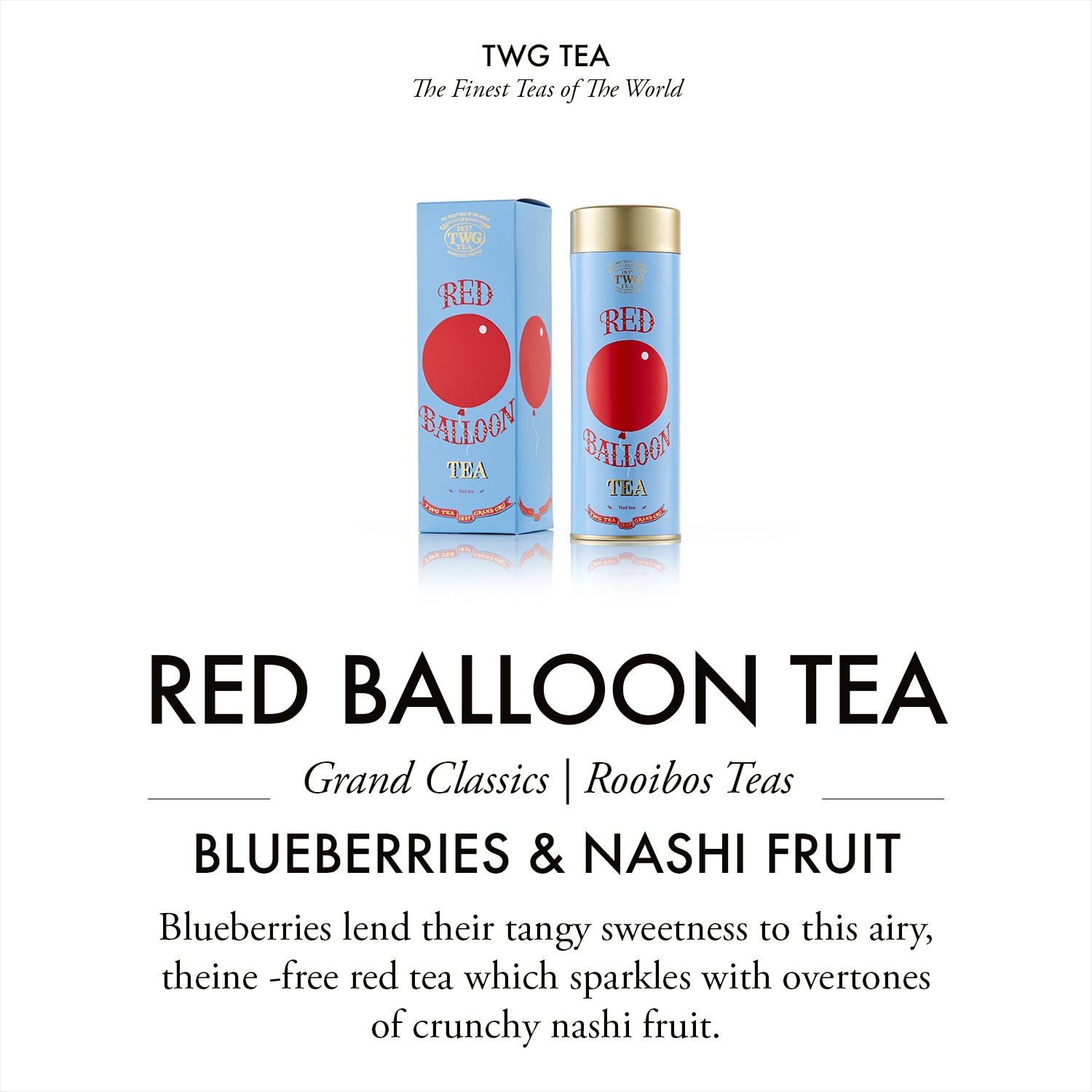 A magical flight of the imagination, this tea is the perfect confection to brighten your day. Blueberries lend their tangy sweetness to this airy, theine-free red tea which sparkles with overtones of crunchy nashi fruit. Fly high with this delightful ode to youth and innocence, the perfect blend for tea lovers of all ages.